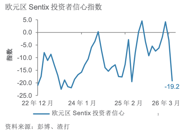 受美伊冲突影响,投资者信心大幅下滑,欧元区Sentix投资者信心指数跌至2025年4月以来的最低水平