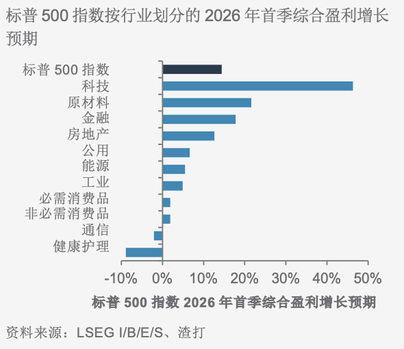 标普500指数2026年首季盈利预期同比增长14.4%,由科技、原材料及金融行业领涨