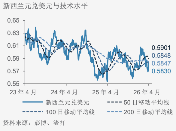 新西兰元兑美元反弹并突破其200日移动平均线;我们预期短期内将保持看涨势头