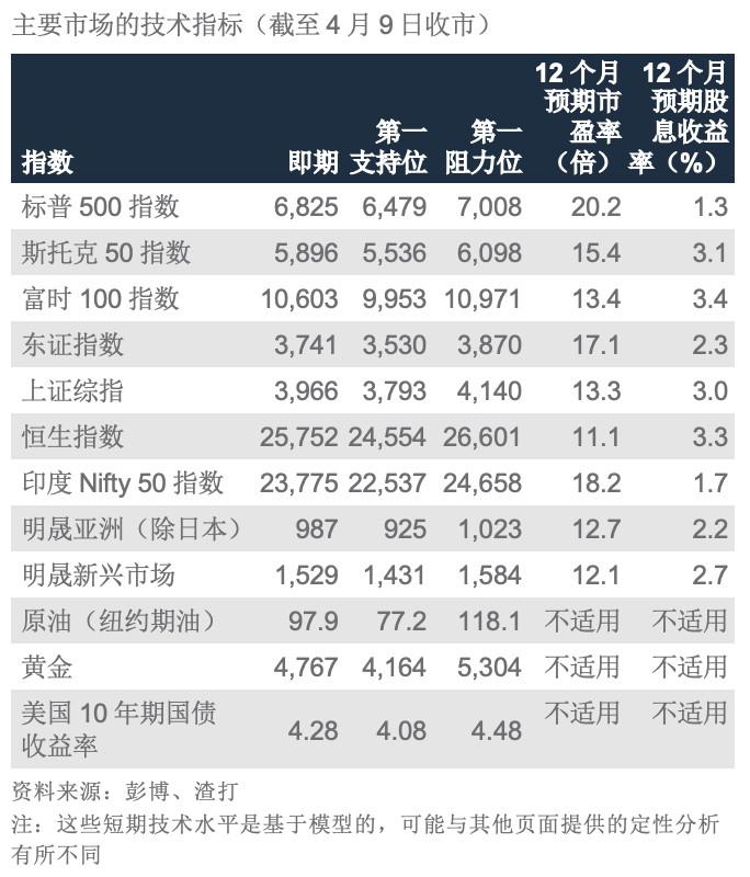 策略概述:美伊停火大致上符合我们预期冲突持续4-6周的基础情境,有助限制高能源价格对增长与通胀的损害。然而,这并未消除下行情境风险。谈判须达成持久协议,才能避免战火重燃及能源价格再次上涨的风险。受物流挑战限制,预计石油产量需要一段时间才能恢复至冲突前的水平。这意味着油价不大可能迅速回落至冲突前的水平。目前,我们继续偏好多元化投资组合,以及下行风险对冲工具,如通胀挂钩债券。短期内,我们预期美国科技行业将获益于市场持仓、基本面改善及估值廉宜。亚洲股票及发达市场高收益债券和新兴市场债券或会获益于油价回落。