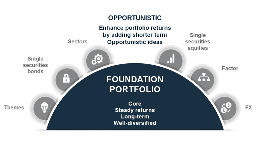 At the heart of a resilient investment strategy lies a simple, but powerful, concept: an optimal balance between foundation vs opportunistic investing, where the foundation provides consistency, and the opportunistic offers flexibility. A strong foundation portfolio is one which is: a) diversified across assets (equities, bonds, alternatives), b) geographically balanced, c) built to withstand market drawdowns, and most importantly, d) aligned with your long-term goals. It is the part of your portfolio you should be comfortable adding to – especially during periods of market volatility – because it is designed to compound steadily over time.