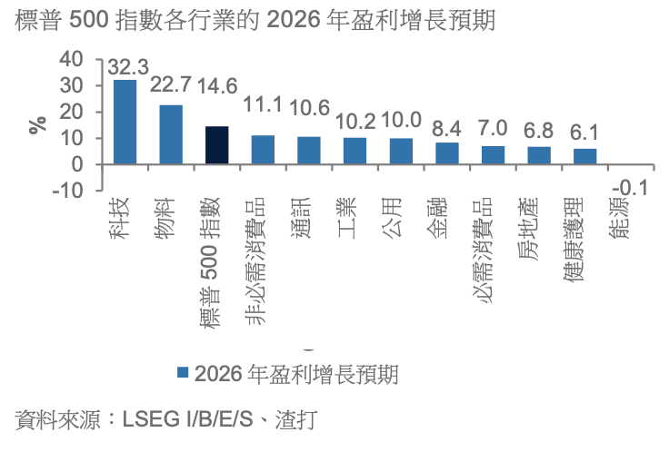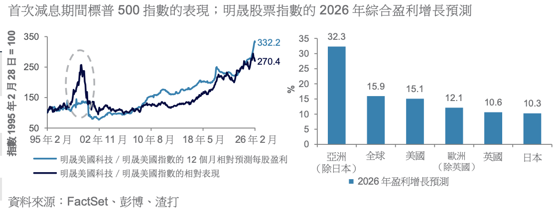 圖. 12 盈利支持科技股領漲趨勢;亞洲(除日本)及美國的2026年企業盈利增長預測領先其他地區