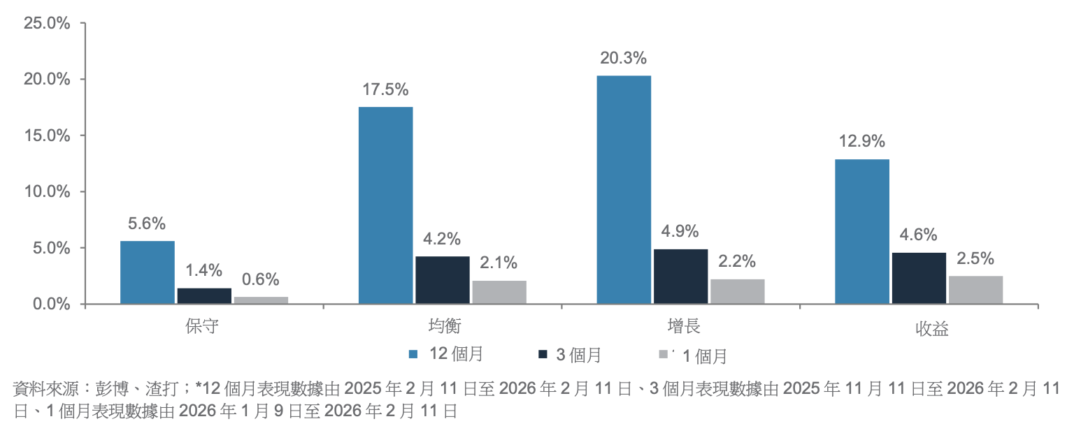 2026年初,經濟增長與盈利能力提升,為市場前景增添了樂觀因素。在盈利增長和多元化投資需求的支持下,我們對股票和黃金的偏好至今表現理想。