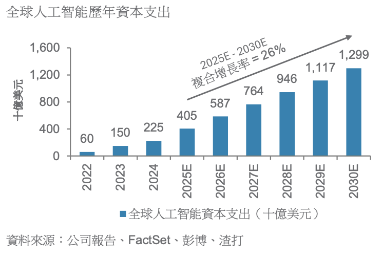 圖. 8 強勁的人工智能資本支出趨勢將延續至2026年及以後