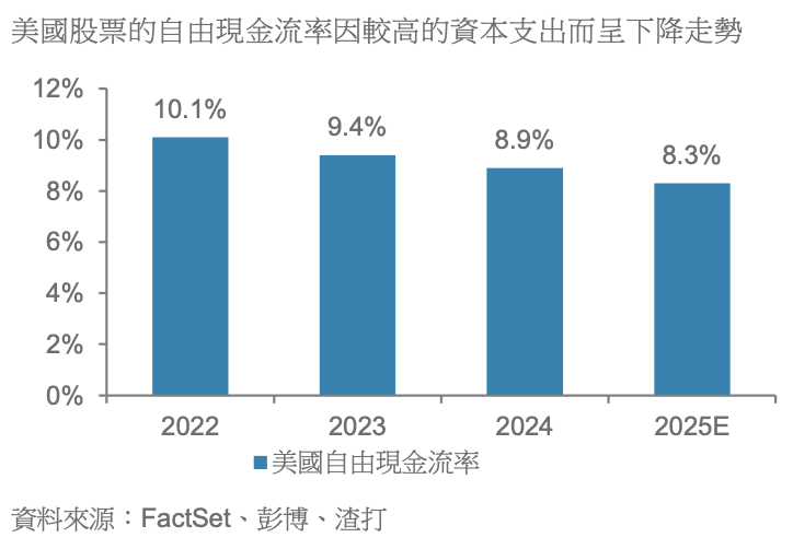 - 估值與融資風險已見緩和。雖然人工智能與整體科技股估值在2025年末曾急升,但人工智能主題於2025年第四季表現平淡,已使估值恢復正常水平。同樣地,儘管較高的資本支出壓縮了美股企業的自由現金流率,但隨著變現路徑逐步明朗,融資風險仍屬可控。主要平台的現金流亦保持穩健。