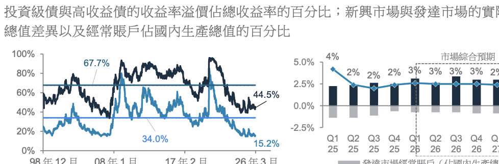 圖. 13 公司債的收益率溢價較低;新興市場基本因素的趨勢穩健