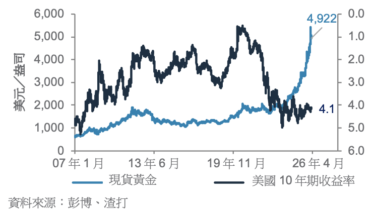 我們仍然超配黃金,並將3個月和12個月目標價分別上調至每盎司5,250美元和每盎司5,350美元。
