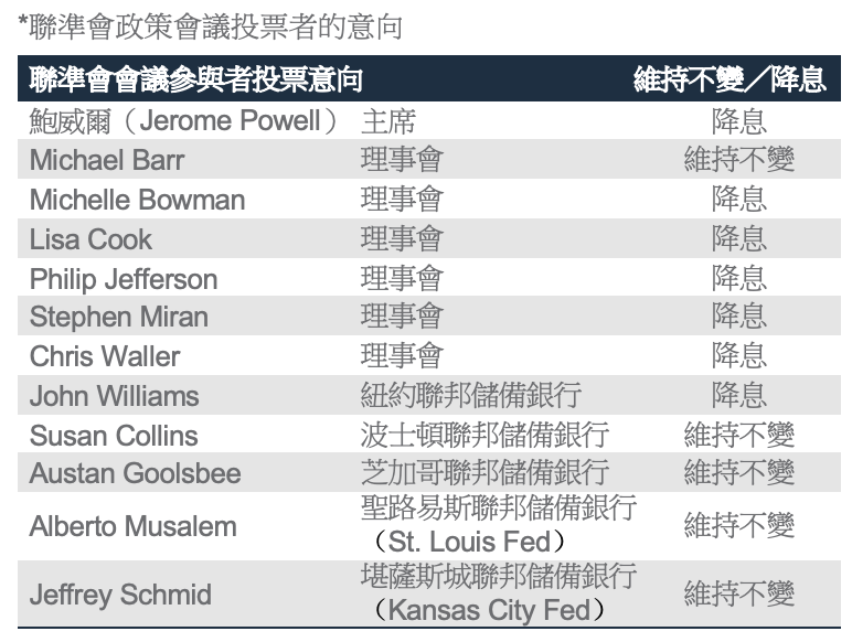 威廉斯重燃市場對聯準會12月降息的押注:紐約聯邦儲備銀行行長威廉斯表示,就業市場放緩和通膨風險緩和,聯準會需要在12月份再次降息。威廉斯的言論使意見嚴重分歧的聯準會的政策方向傾向一邊(見上表),將市場對12月降息的預期從上週約30%推高至80%以上。先前市場對降息的預期降溫,原因是近期政府停擺導致經濟數據不足,以及關稅可能帶來通膨風險,以致多位聯準會決策者呼籲謹慎行事。