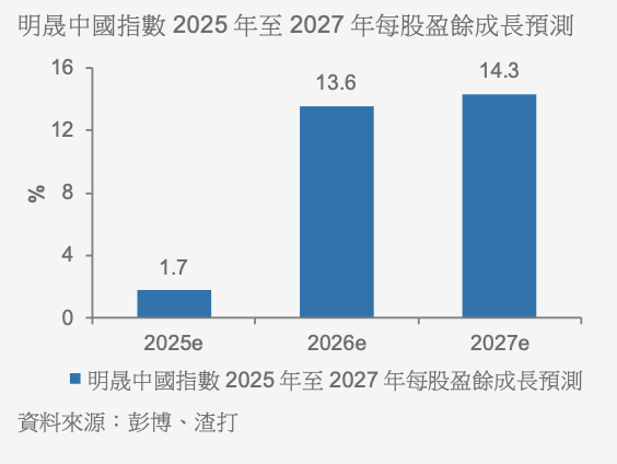 我們預期中國股票的盈餘成長將於2026至2027年恢復