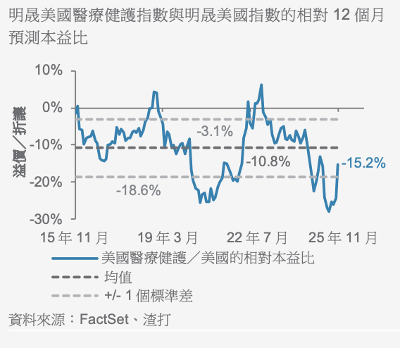 美國醫療健護行業雖然近期表現強勁,但仍較美國整體市場有15.2%的折讓