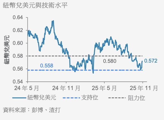 同時,我們預期聯準會將在2026年繼續降息。聯準會與紐西蘭央行之間的政策分歧不斷擴闊,利差應該會有利於紐幣兌美元。