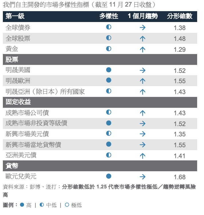 各資產類別的投資者多樣性已趨於正常