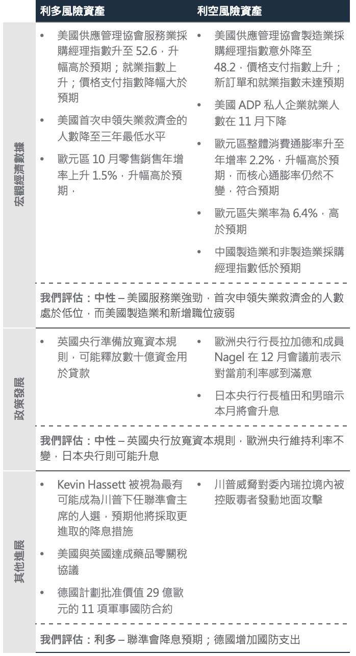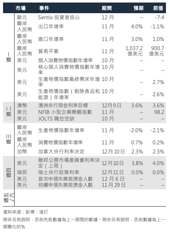 詳情請留意我們將於12月12日發布的《2026年全年展望》。為波動做好準備:儘管市場表現強勁,但未來數週的五個事件可能會增加市場的波動:a) 聯準會12月10日的政策會議;b) 美國將於聯準會會議後公布大量數據,包括延遲公布的11月就