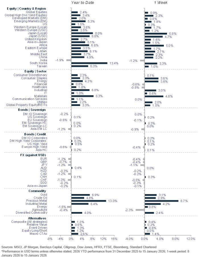 Bank earnings mixed; tech earnings in focus. US banks started Q4 earnings season on a mixed note, with those relying on investment banking and wealth management income outperforming (page 6). The focus turns to tech sector earnings which will determine the sustainability of the AI-driven boom.
