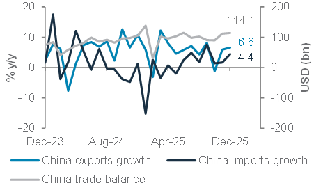 China’s exports grew more than expected in December; trade surplus reached USD 114 billion, the third-highest monthly surplus on record