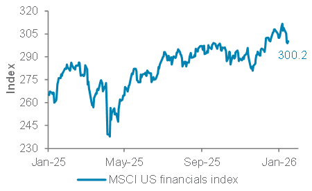 Major US banks’ earnings have been mixed so far, with earnings generally beating consensus and revenue being missed only in some instances. Overall, bank earnings point to a stable US economy, supporting positive loan growth and controlled credit risk. A continued increase in capital market activity and a focus on efficiency will support healthy earnings growth in 2026.