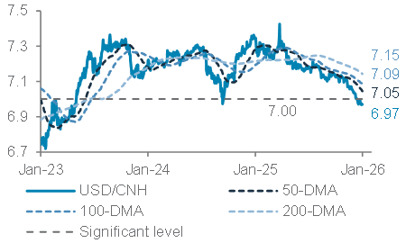 USD/CNH broke below 7 at year-end 2025. Do you see further downside?
