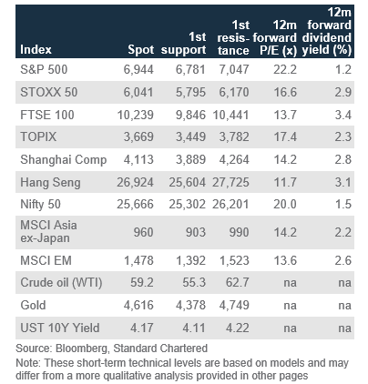 Banking activities may be carried out internationally by different branches, subsidiaries and affiliates within the Standard Chartered Group according to local regulatory requirements. Opinions may contain outright “buy”, “sell”, “hold” or other opinions. The time horizon of this opinion is dependent on prevailing market conditions and there is no planned frequency for updates to the opinion. This opinion is not independent of Standard Chartered Group’s trading strategies or positions. Standard Chartered Group and/or its affiliates or its respective officers, directors, employee benefit programmes or employees, including persons involved in the preparation or issuance of this document may at any time, to the extent permitted by applicable law and/or regulation, be long or short any securities or financial instruments referred to in this document or have material interest in any such securities or related investments. Therefore, it is possible, and you should assume, that Standard Chartered Group has a material interest in one or more of the financial instruments mentioned herein. Please refer to our Standard Chartered website under Regulatory disclosures for more detailed disclosures, including past opinions/ recommendations in the last 12 months and conflict of interests, as well as disclaimers. A covering strategist may have a financial interest in the debt or equity securities of this company/issuer. All covering strategist are licensed to provide investment recommendations under Monetary Authority of Singapore or Hong Kong Monetary Authority. This document must not be forwarded or otherwise made available to any other person without the express written consent of Standard Chartered Group.